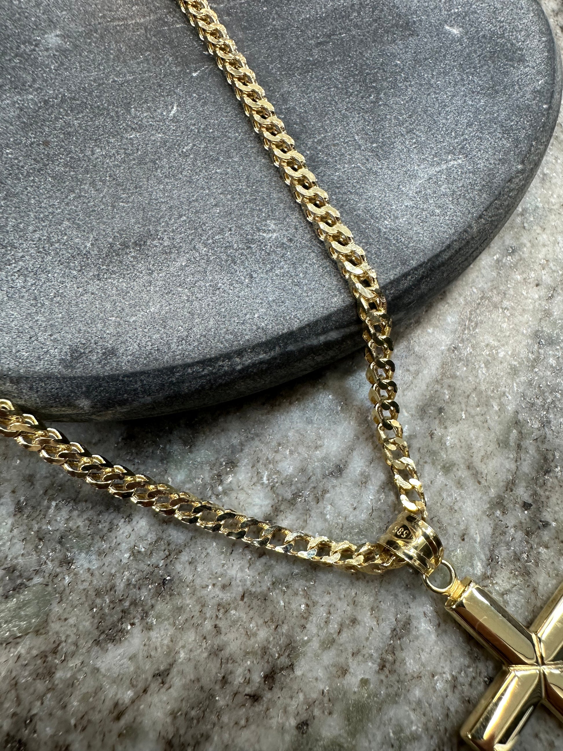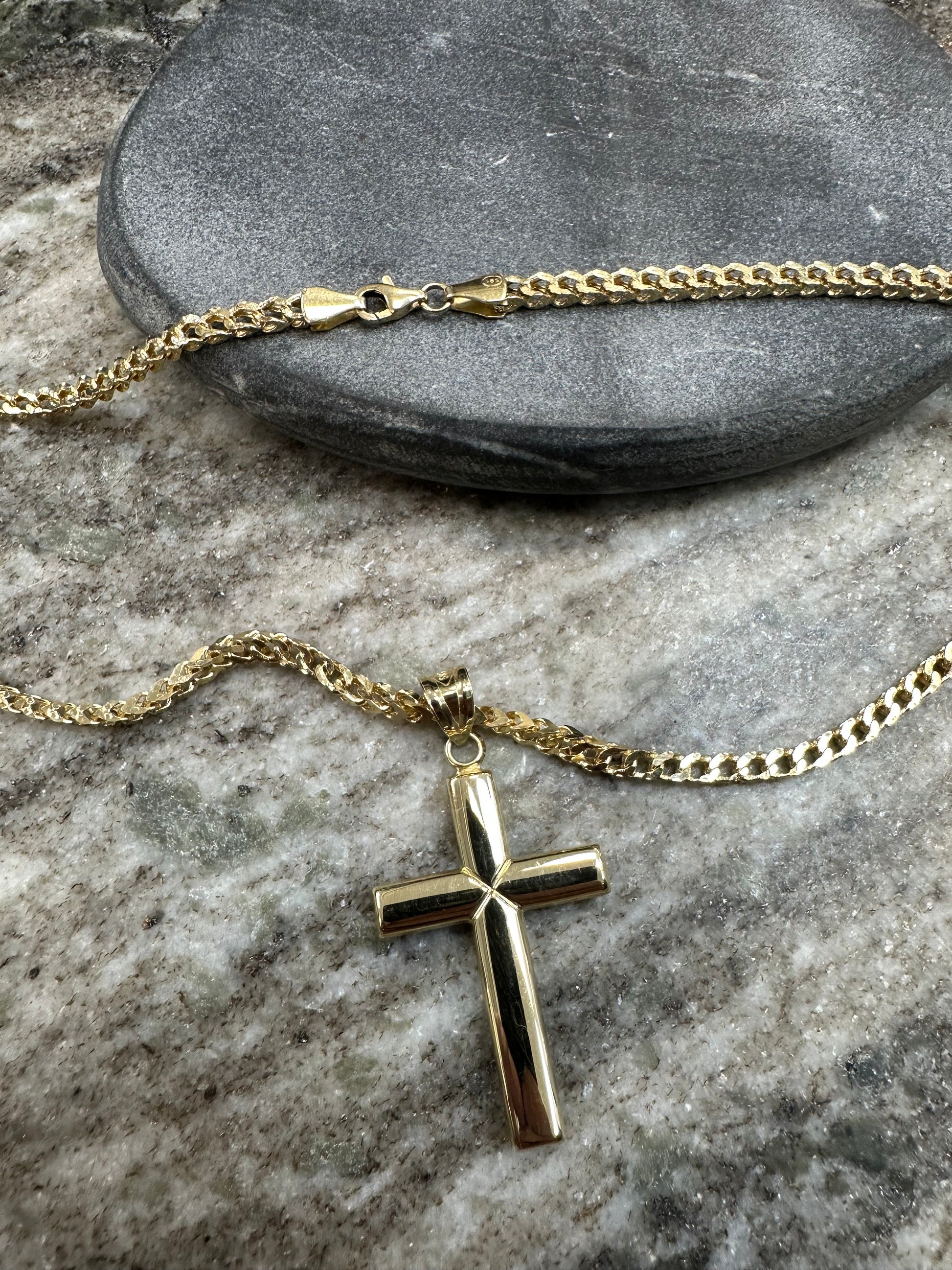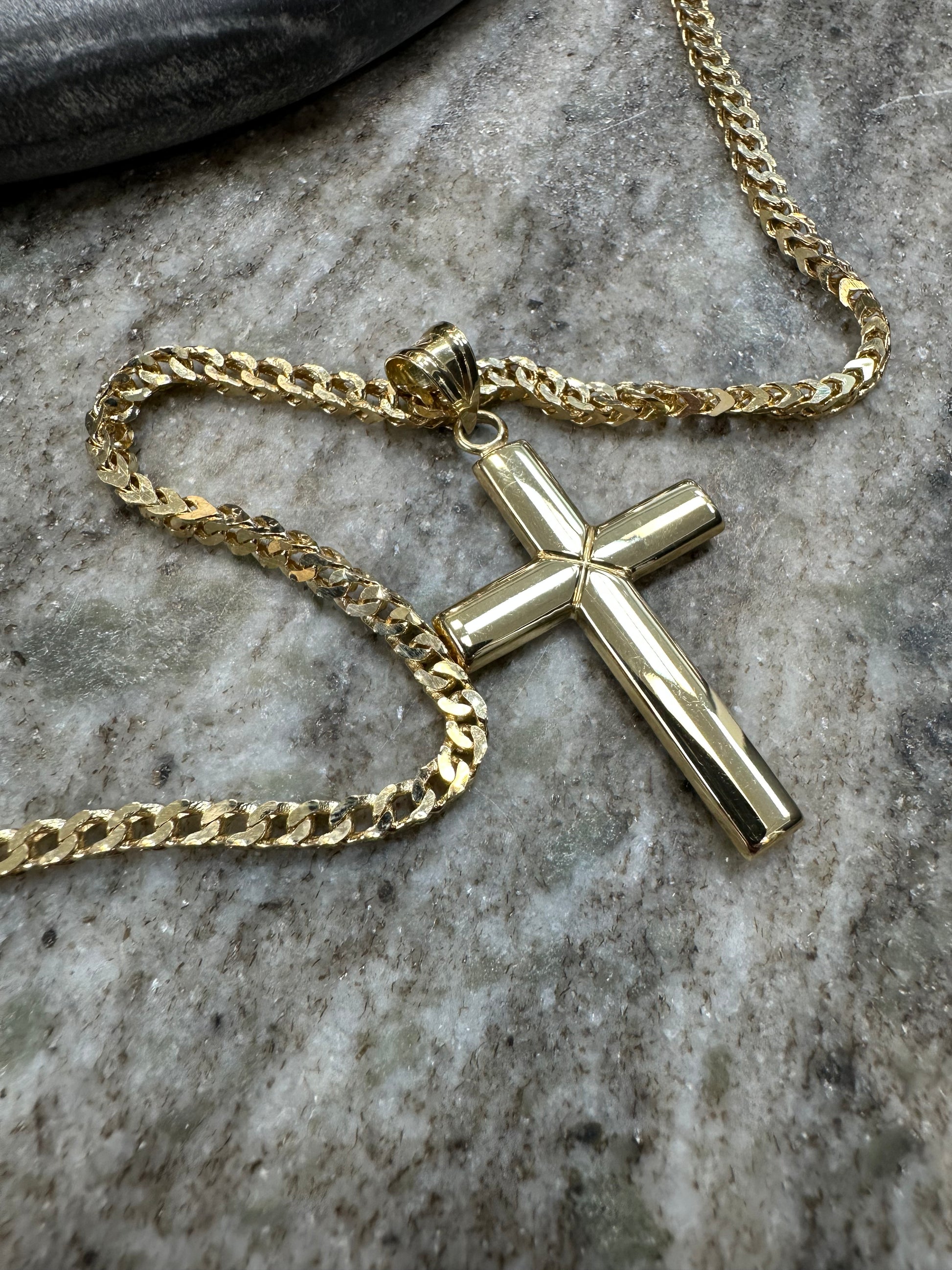 14K Gouden CubaanVos Ketting met Gladde Kruishanger – Luxe & Spirituele Klasse