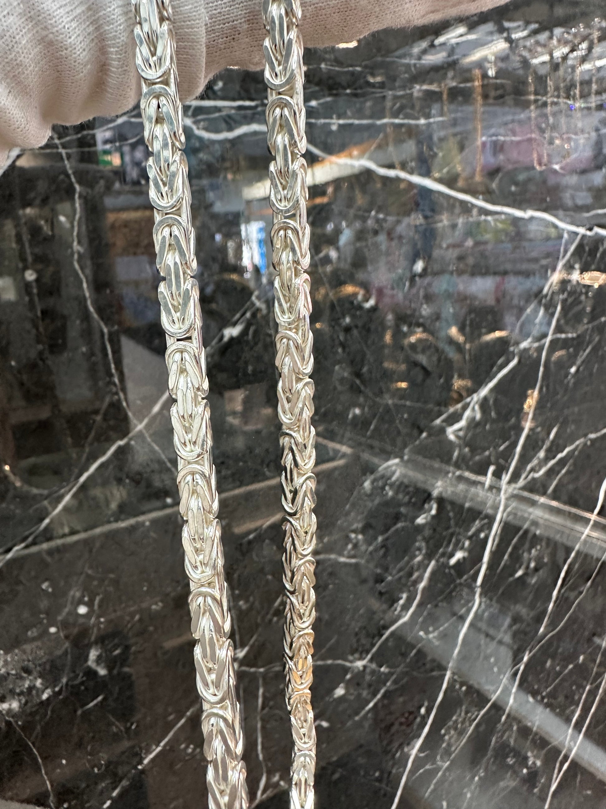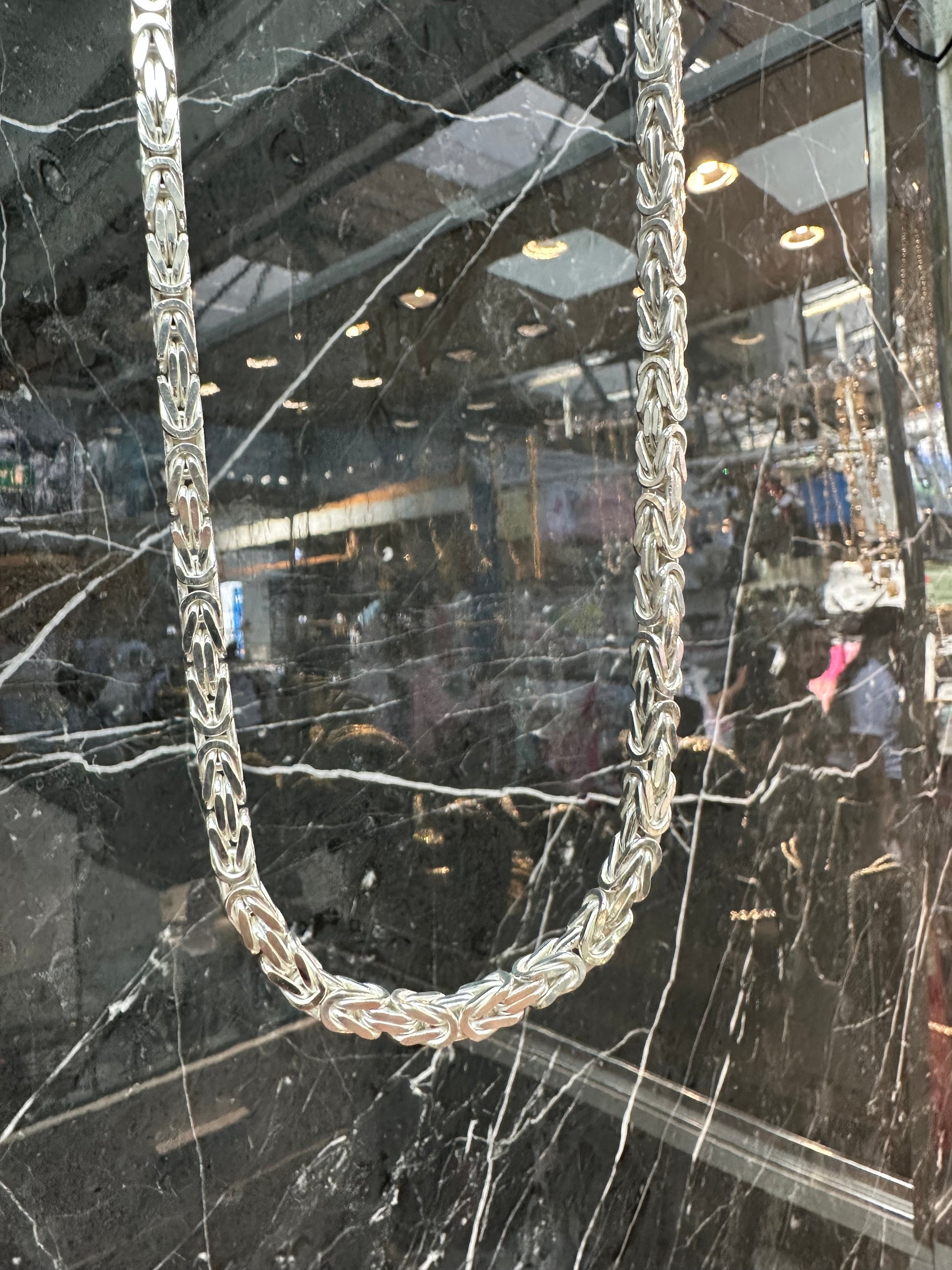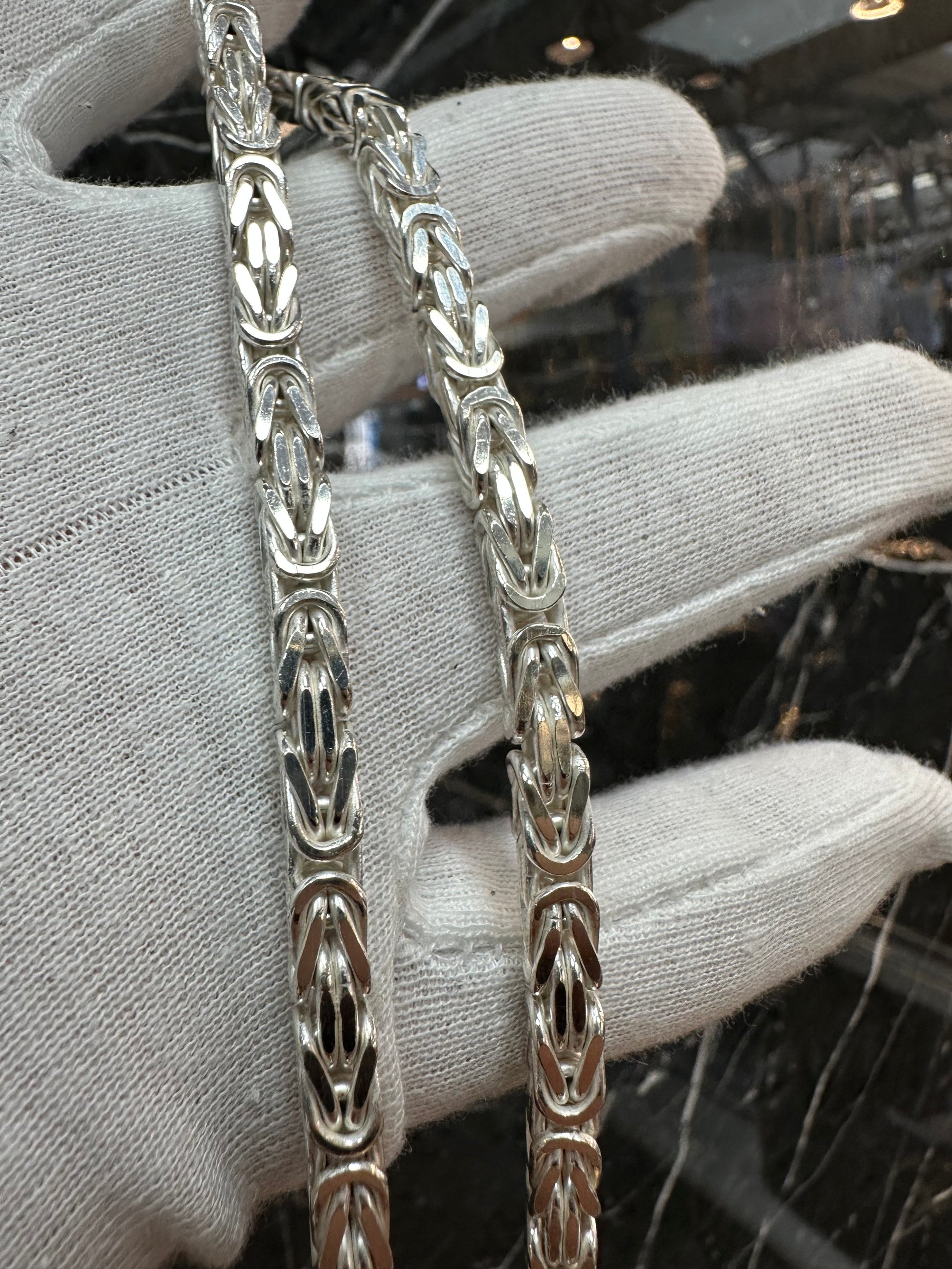 Deze 925 zilveren massieve koningsketting is een klassiek en krachtig statement-sieraad, perfect voor wie houdt van een robuuste en tijdloze look. Met een lengte van 65 cm en een breedte van 5 mm is deze ketting ideaal voor dagelijks gebruik of om te combineren met een stoere hanger. Het koningsschakel-patroon staat bekend om zijn unieke, gevlochten uitstraling en solide structuur.