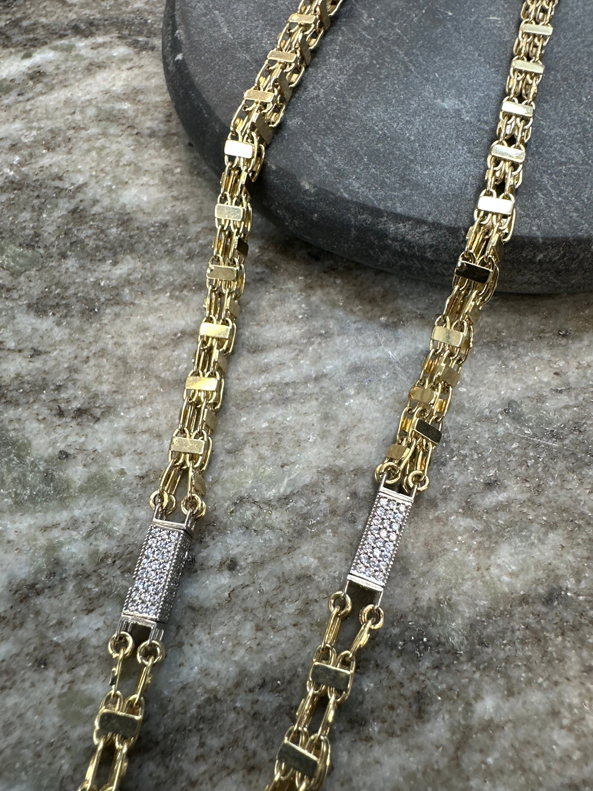 Maak een statement met ultieme luxe – deze 14K gouden iced Magnum ketting is exclusief verkrijgbaar bij Sam’s Juwelen.