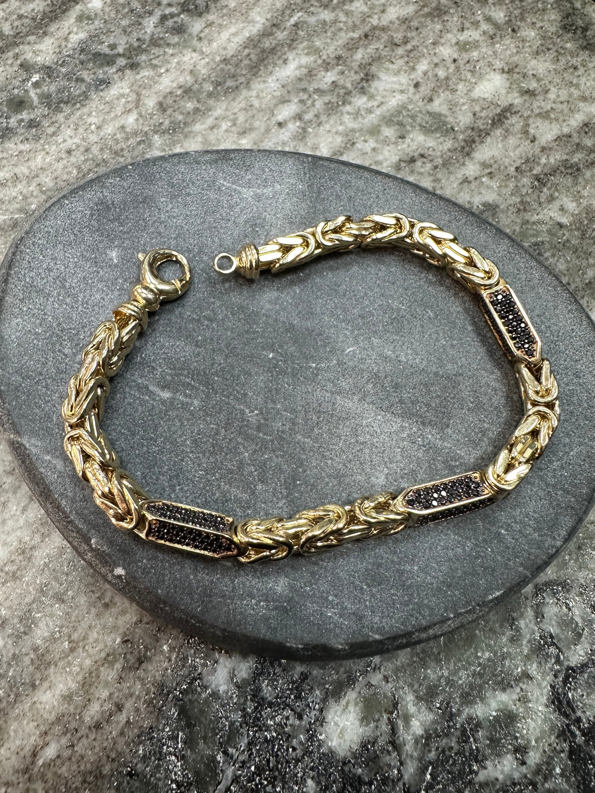 Deze 14K gouden koningsset combineert kracht, luxe en betekenis in één geheel. De combinatie van massief goud en onyx maakt dit een sieraad dat zowel opvalt als elegant blijft. Perfect voor wie houdt van exclusieve sieraden met karakter.