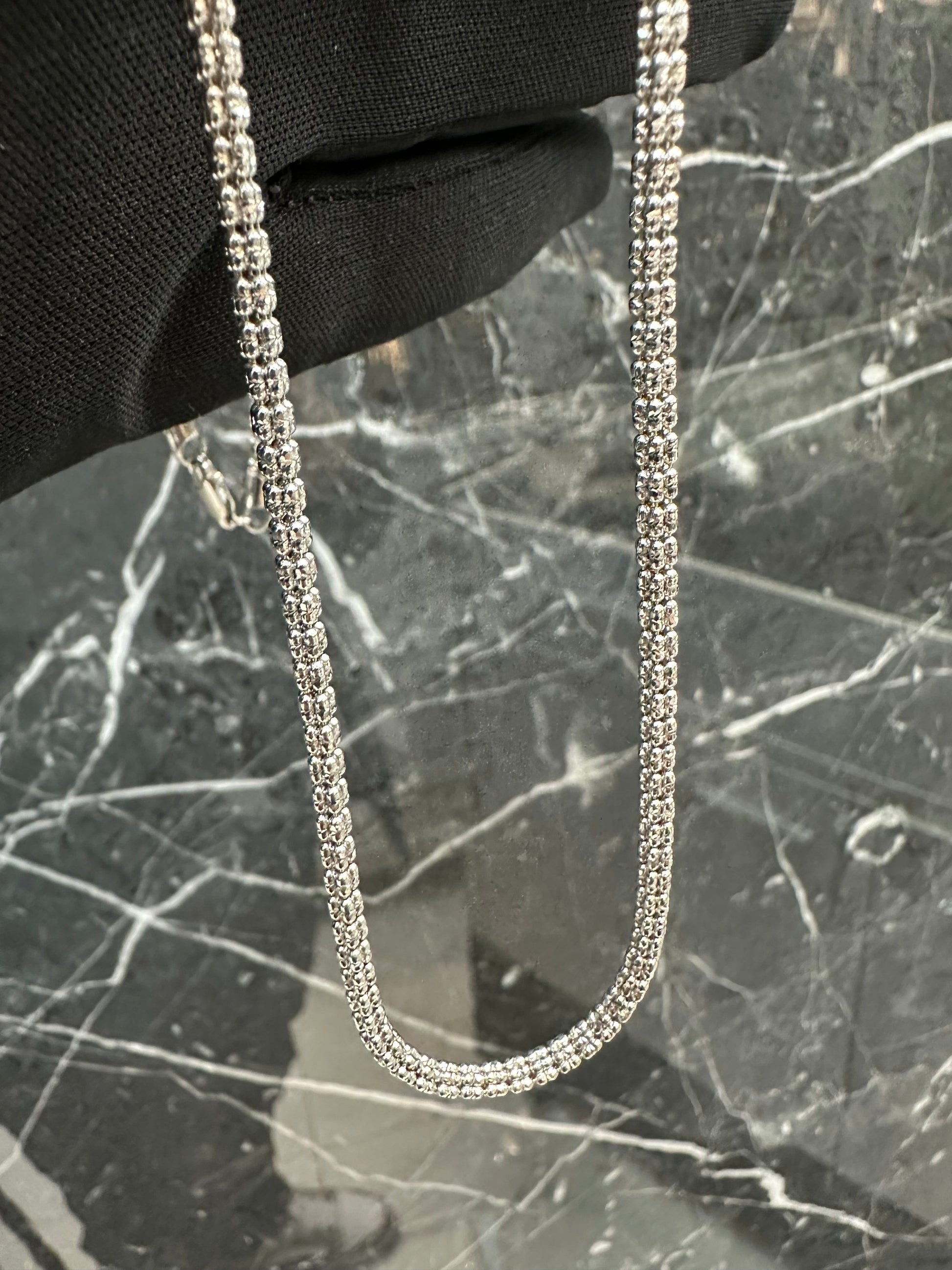 Een luxe witgouden ketting met diamond cut – exclusief verkrijgbaar bij Sam’s Juwelen.